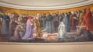 Nove mesi prima della natività di Maria (8 settembre) la Chiesa celebra la solennità dell’Immacolata Concezione della Beata Vergine Maria. Festa approvata nel 1476 da papa Sisto IV e poi stabilita per tutta la Chiesa da Clemente XI nel 1708. Raccogliendo la dottrina secolare dei Padri e dei Dottori della Chiesa, dei Concili e dei suoi predecessori, Pio IX proclamò solennemente il Dogma dell’Immacolata Concezione nel 1854: “Noi dichiariamo, affermiamo e definiamo rivelata da Dio la dottrina che sostiene che la beatissima Vergine Maria fu preservata, per particolare grazia e privilegio di Dio onnipotente, in previsione dei meriti di Gesù Cristo Salvatore del genere umano, immune da ogni macchia di peccato originale fin dal primo istante del suo concepimento” (Bolla Ineffabilis Deus, 1854).